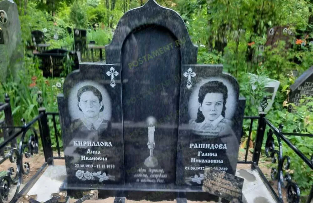 Комплекс из Дымовского и Куртинского гранита со стеклом и инкрустацией креста и букв